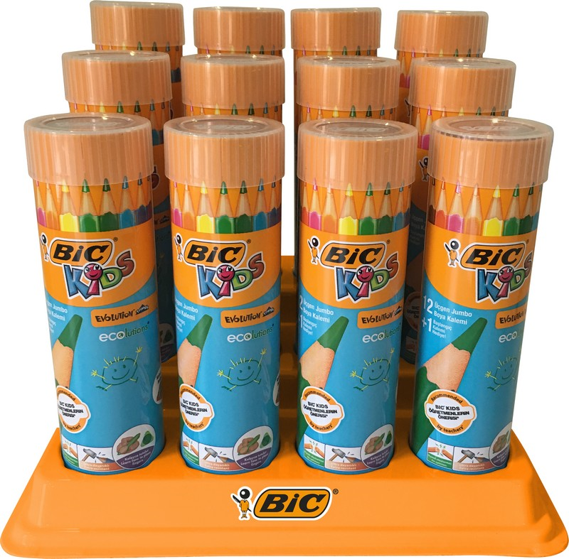 Bic Evolution Üçgen Jumbo Kuru Boya Kalemi 12+1'li Metal Tüp