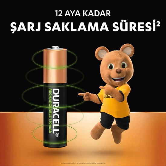 DURACELL RECHARGEABLE ŞARJLI İNCE PİL 4'LÜ (AAA) 750mAH