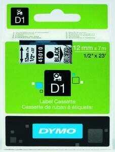 Dymo 45010 D1 Yedek Şerit 12Mmx7Mt ŞeffafSiyah