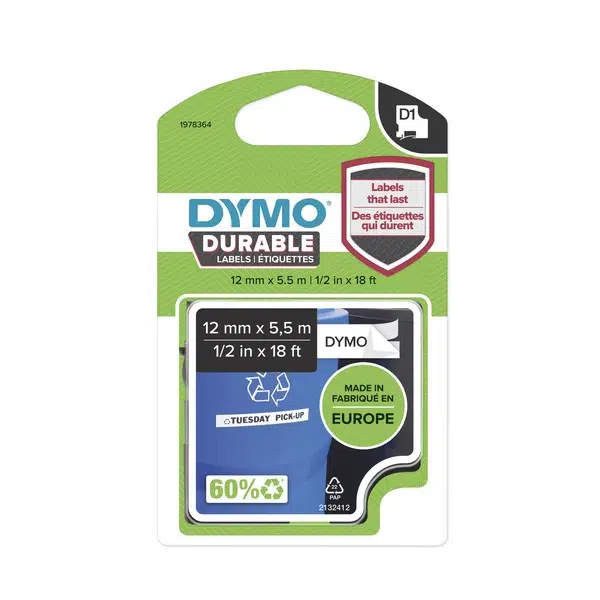 | Etiketler | Dymo Kalıcı D1 Şerit (12mmX5,5mt) Beyaz-Siyah |