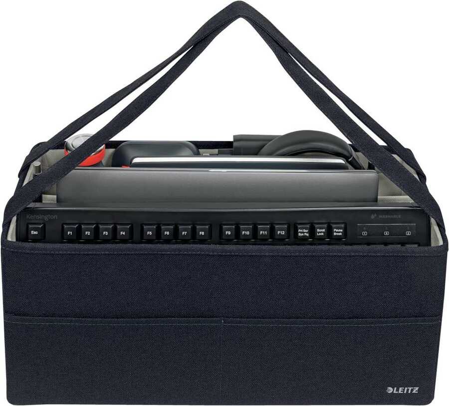 - Leitz Kumaş Hot Desking Çalışma Çantası, önünüzdeki gün için ihtiyacınız olan her şeyi saklamanıza ve taşımanıza olanak tanıyan üç ayrı bölmeye sahiptir.