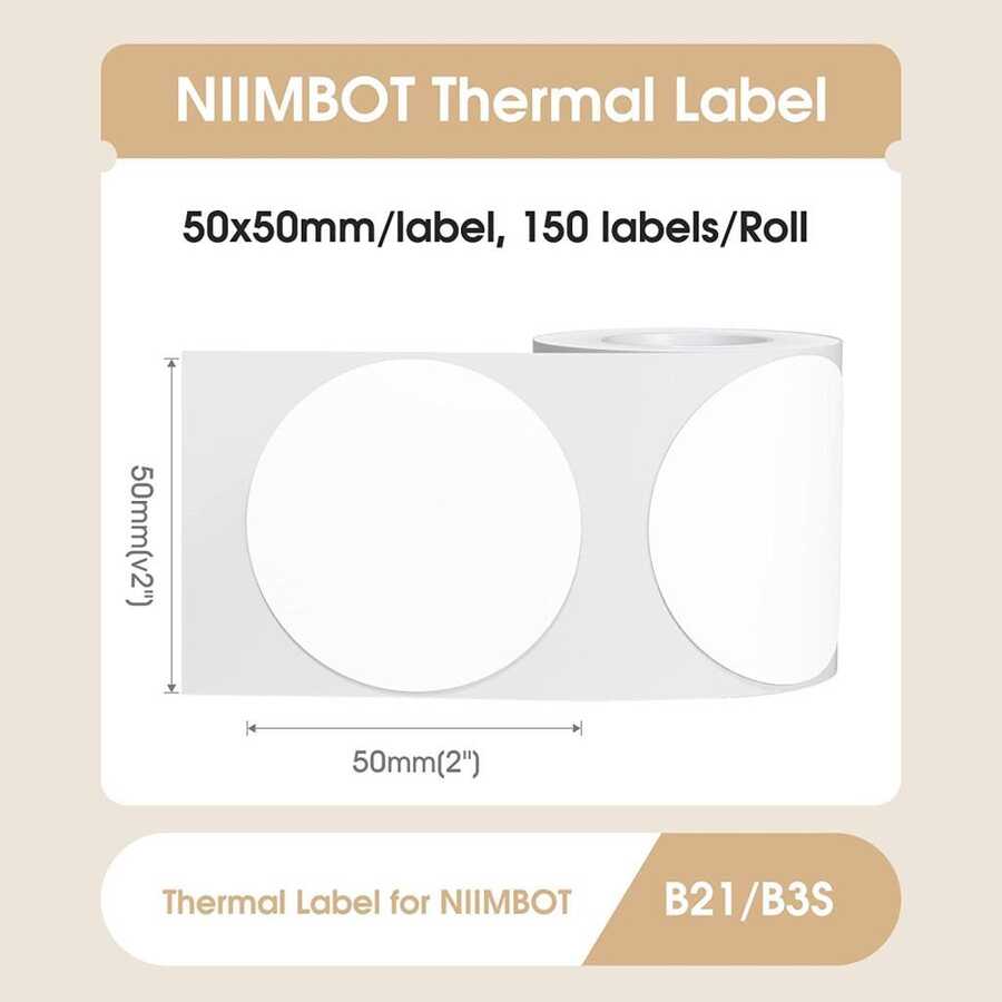 NiiMbot 50x50mm Yuvarlak Beyaz Etiket B21/B1/B3S İçin 150 Adet Yırtılmaz, Sudan Ve Yağdan Etkilenmez