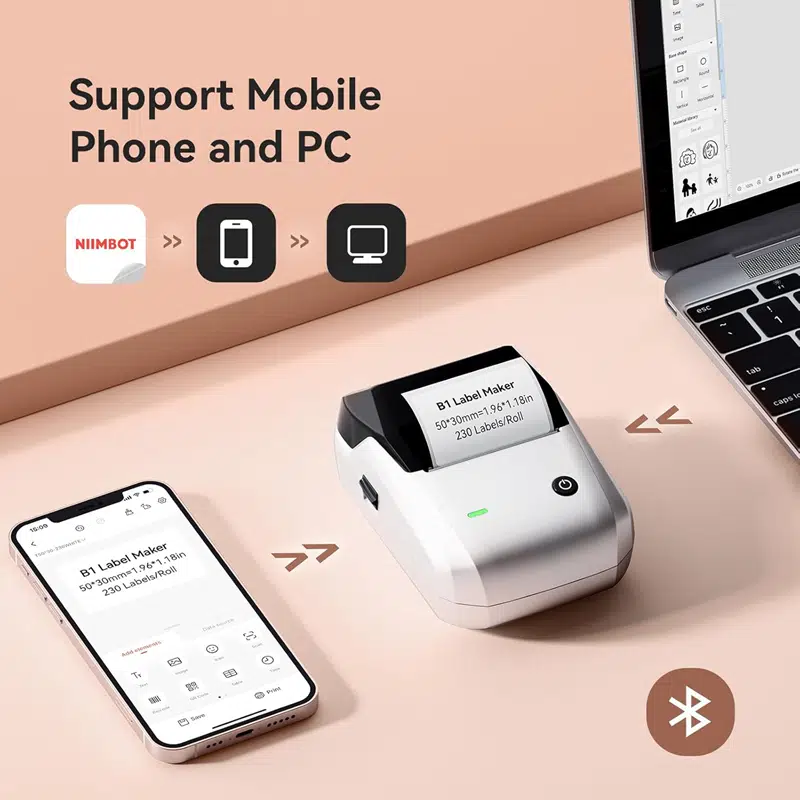 NiiMbot B1 Etiket Makinesi Gri, Bluetooth Kablosuz Taşınabilir (Grey) - USB Şarjlı