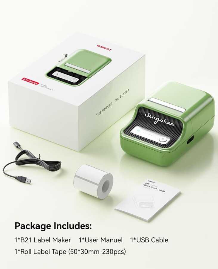 NiiMbot B21S Etiket Makinesi Yeşil Kablosuz Taşınabilir Bluetooth - USB Şarjlı