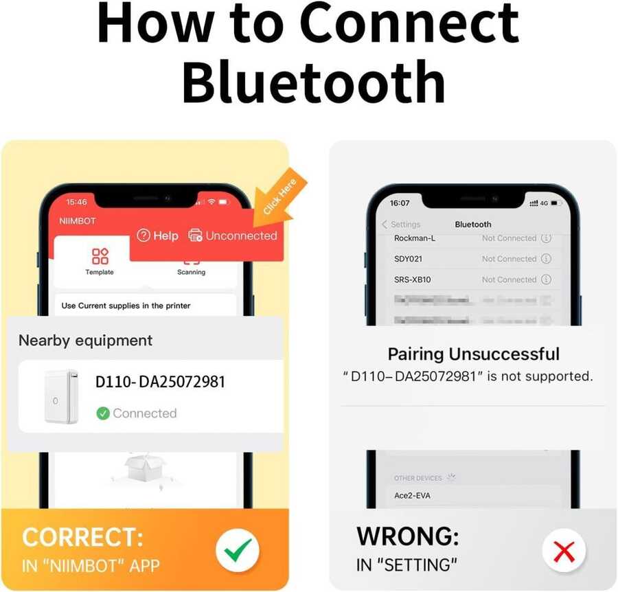 Bluetooth Bağlantısı: Apple Store ve Google Play'den NIIMBOT uygulamasını yükleyin->Uygulamaya girin ve makineyi açın->Ekranın üst kısmındaki "bağlantısız" düğmesine tıklayın ve menüden D110 yazıcı modelini seçin -> Bluetooth ile eşleştirin ve bağlayın uygulama. Mobil cihazlardan kolayca kişiselleştirme ve etiket oluşturma, hayatınızı ve işinizi düzene sokmanıza yardımcı olur.Kendi Etiketlerinizi Özelleştirin