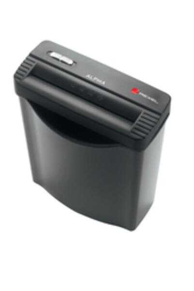 Alpha Çapraz Kesim İmha Makinesi bir seferde 5 sayfayı P4 (4x38mm) çapraz kesim parçalarına ayrırarak imha eder. Zımba teli, ataç ve kredi kartı imha edebilir ve 14 litre kovaya sahiptir.