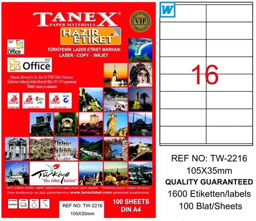 | Etiketler | Tanex 105X35mm Laser Etiket 100'Lü (Tw-2216) |